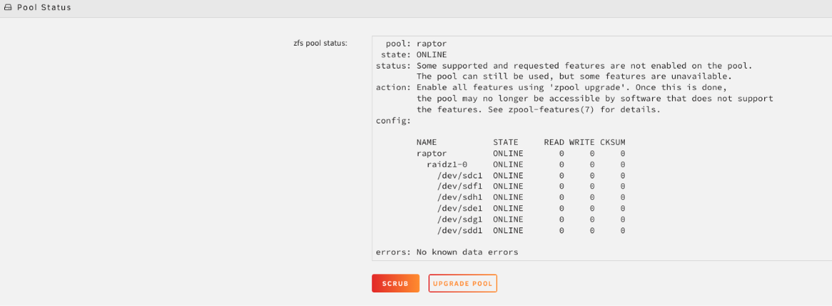 • Intégrité des données: ZFS fournit des contrôles d'intégrité au niveau des blocs (checksums). Bien qu'un seul disque ne puisse pas s'auto-réparer du rot bit, ZFS détectera la corruption et vous alertera, vous permettant de restaurer à partir d'une sauvegarde avant que des pertes de données silencieuses ne se produisent.